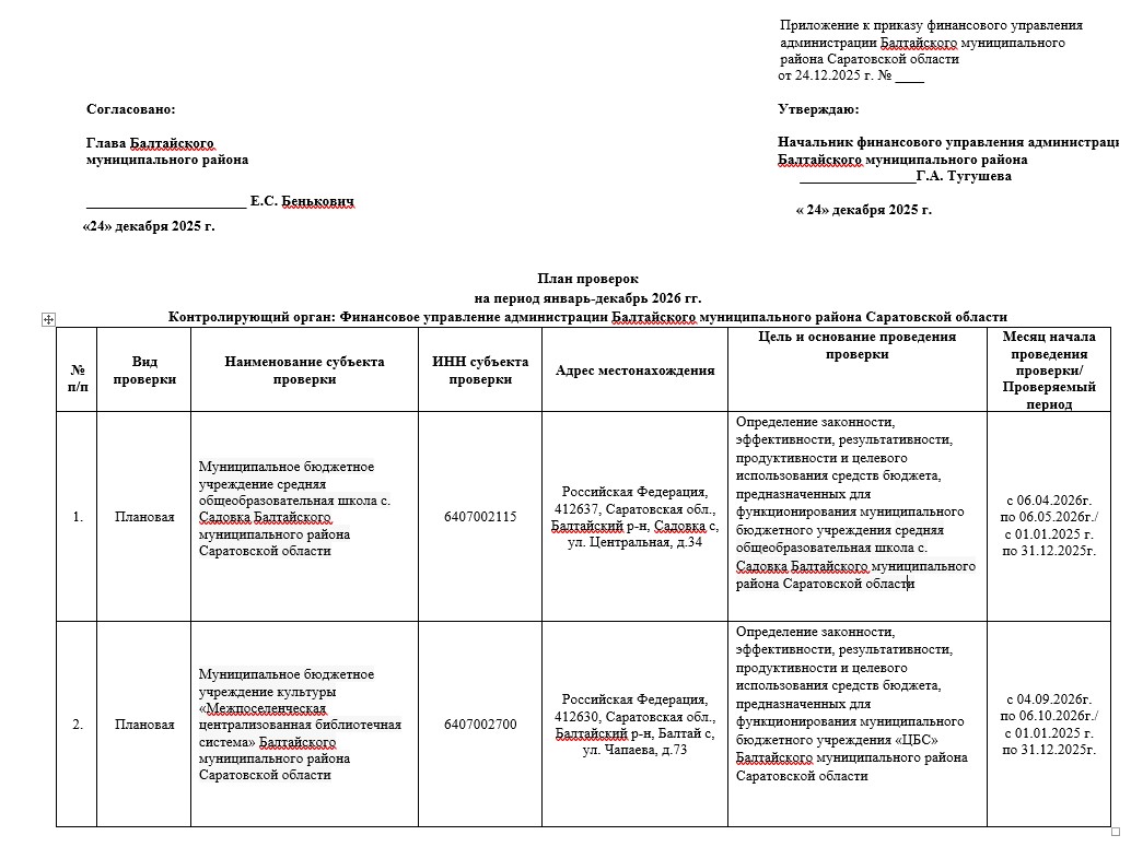 План проверок на период январь-декабрь 2026 гг.