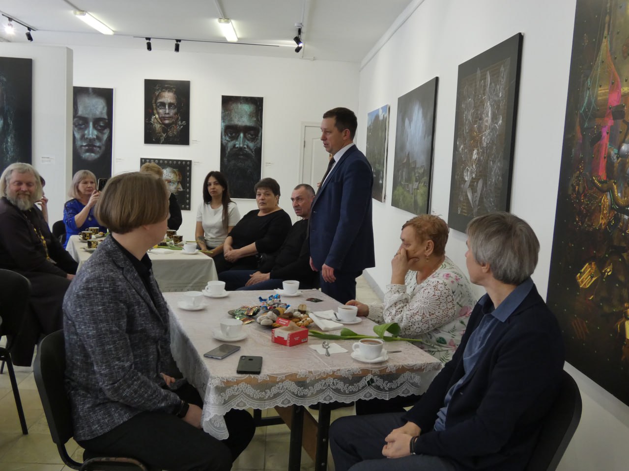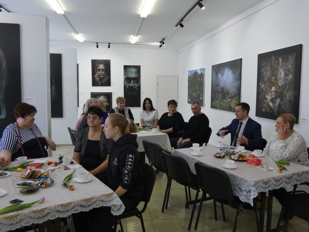 Сегодня в канун празднования Международного женского дня 8 Марта в картинной галерее районного краеведческого музея глава района Евгений Бенькович вместе с депутатом Саратовской областной Думы Вадимом Рогожиным встретились с матерями и женами погибших участников специальной военной операции